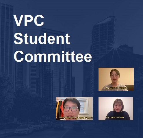 In this video we introduce you to our VPC Student Committee members: Elvan, Kevin, Maria. They are here to help organize activities and events for all students. Come join them...